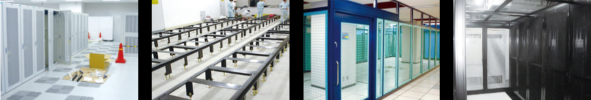 ▲サーバーラックの設置・施工 ▲ 架台の設置・施工 ▲セキュリティケージの設置・施工 ▲コンテイメントの設置・施工